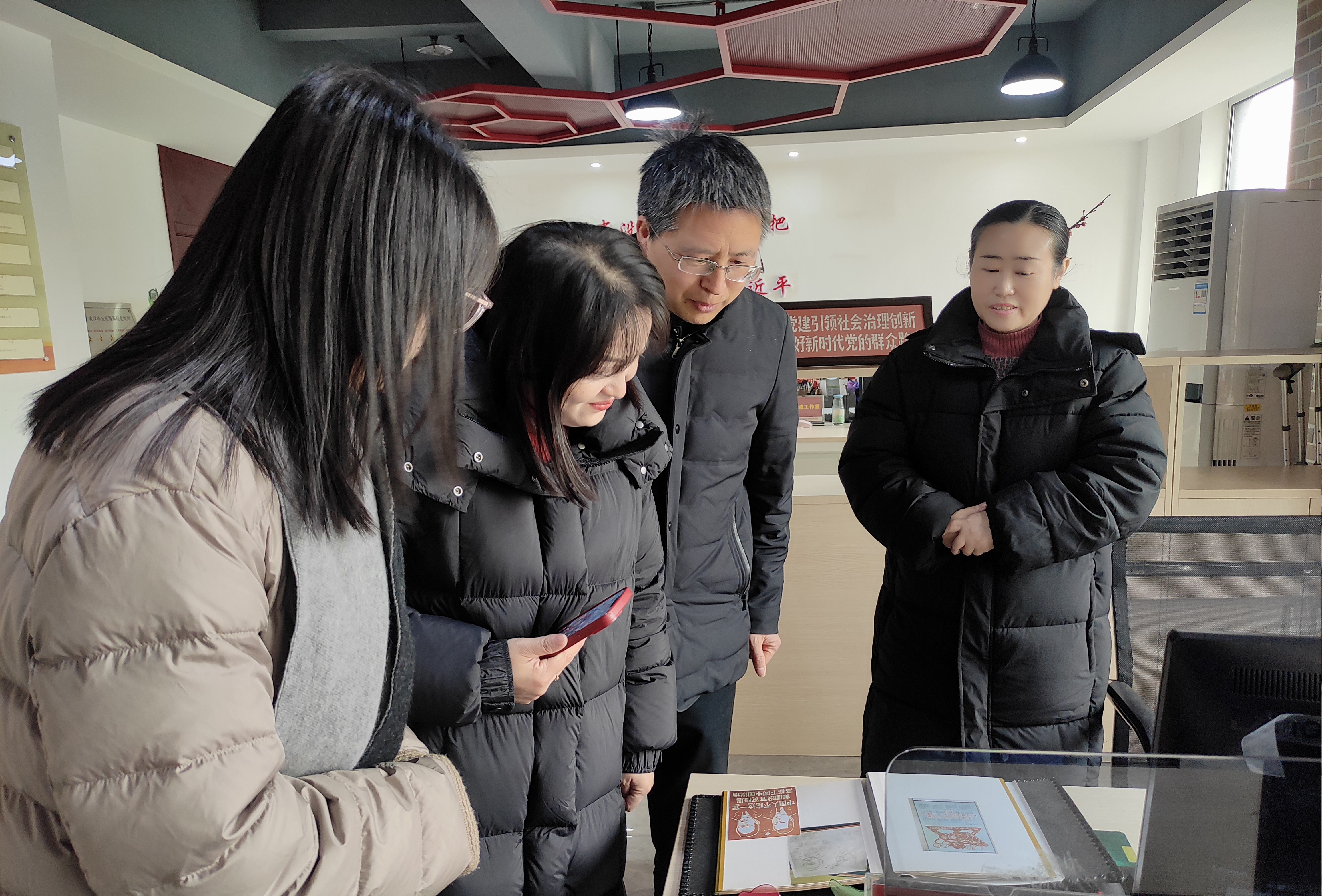 在青山区妇联兼职副主席、青山区西鱼家社会工作站负责人徐慧的带领下,老师们参观了青和居社区党员群众服务中心,认真学习了青和居社区作为全国先进基层党组织在基层党建和治理体系的创新理念和先进经验,逐一了解“1314”工作模式、“天天敲门十八法”“社区好味到”“顺顺吧”“520工作法”等特色品牌。