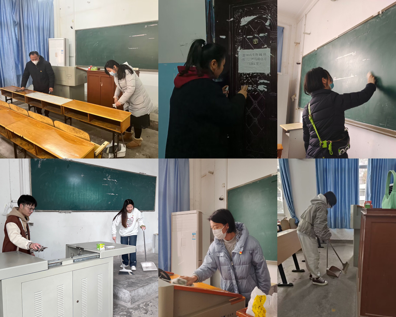 全体师生党员齐聚一号教学楼,对各教室进行细致地卫生打扫。他们低头俯身、挥洒汗水,用自己的双手清理垃圾与灰尘、铲除教学楼道间小广告,为广大学生增添一份干净与整洁,营造一个温馨的学习环境。