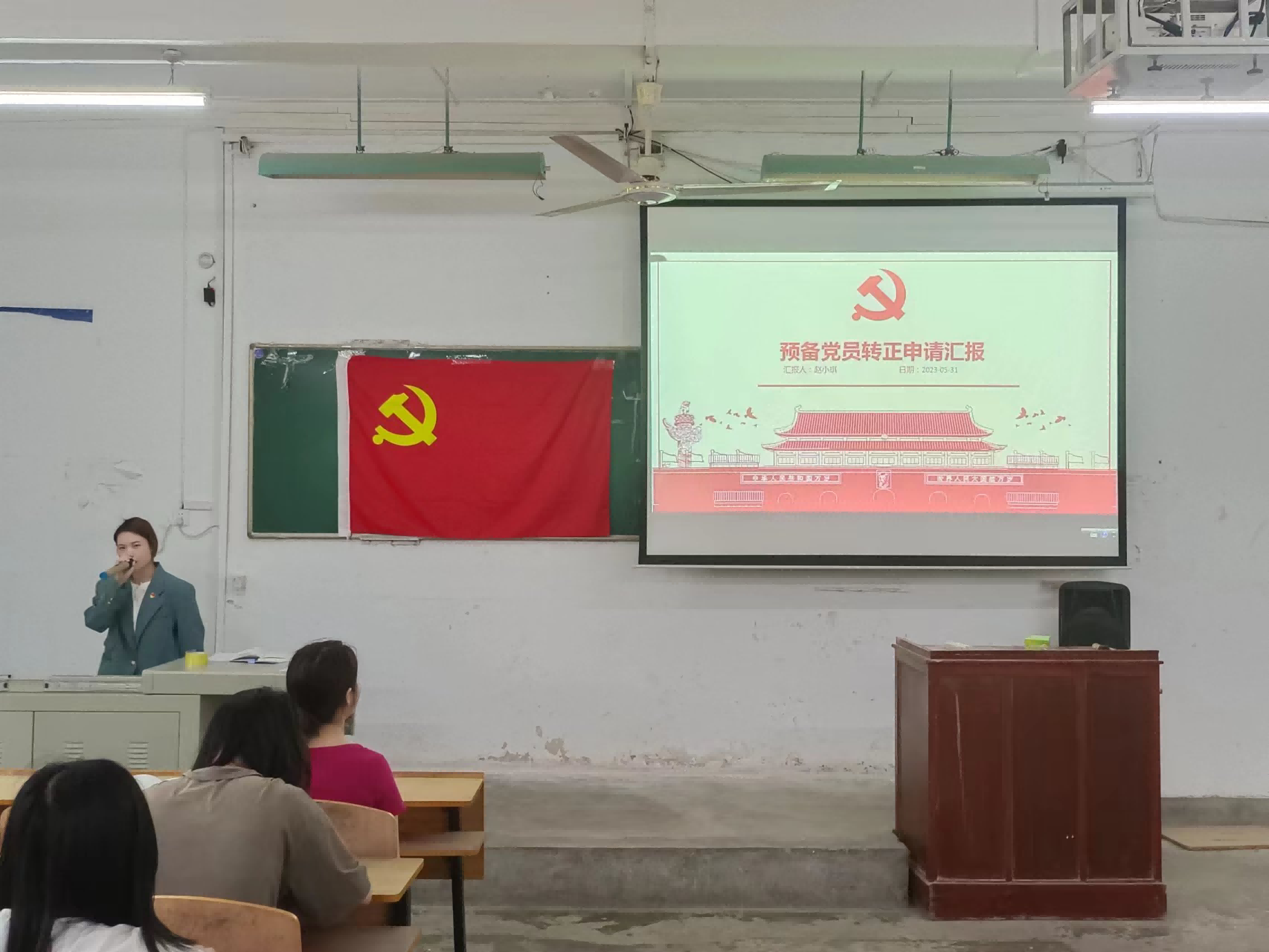 预备党员转正代表李菊明、赵小琪、吕利莎从自成为预备党员以来这一年的点滴经历向大家进行分享交流。