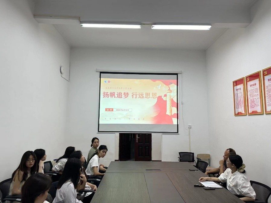 为落实立德树人根本任务,推动用党的创新理论铸魂育人,2024年6月12日上午,yl6809永利集团党总支开展毕业生党员最后一节党课特色主题党日活动。活动由yl6809永利集团第三党支部书记徐特主持。