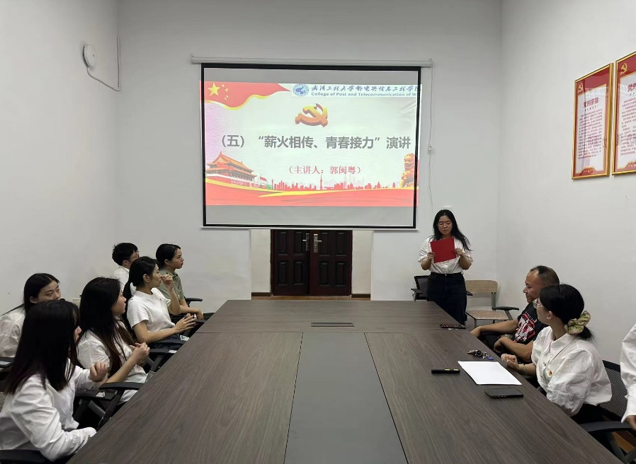 在校生党员郭闽粤同学开展“薪火相传、青春接力"演讲,此次毕业生党员离校教育活动不仅是一次思想的洗礼和升华,更是一次精神的传承和接力。