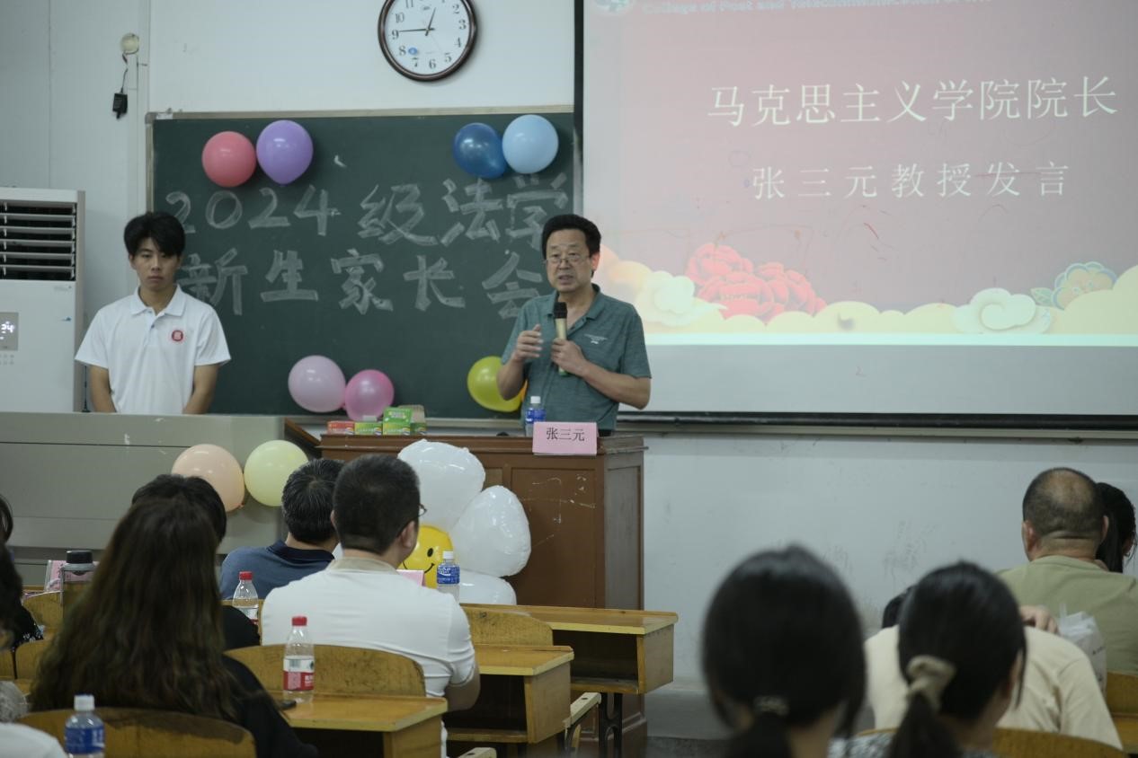 2024年9月12日中午,yl6809永利集团在1210教室召开2024级新生家长见面会。yl6809永利集团院长张三元教授为各位新生家长详细介绍了yl6809永利集团的基本情况,对法学专业特色和就业方向做出了详细的分析和介绍。党总支书记齐君以“大学对新生的挑战”为主题,分别从目标与选择、课程学习、课余生活、人际关系、抗逆力五个方面讲解了新生同学们可能会遇到的五大挑战,希望通过家校合力,共同助力学生健康成长成才。新生班主任们依次上台进行自我介绍,对新生们暖心寄语。新生辅导员张翔老师详细地介绍了军训期间的工作安排以及注意事项。