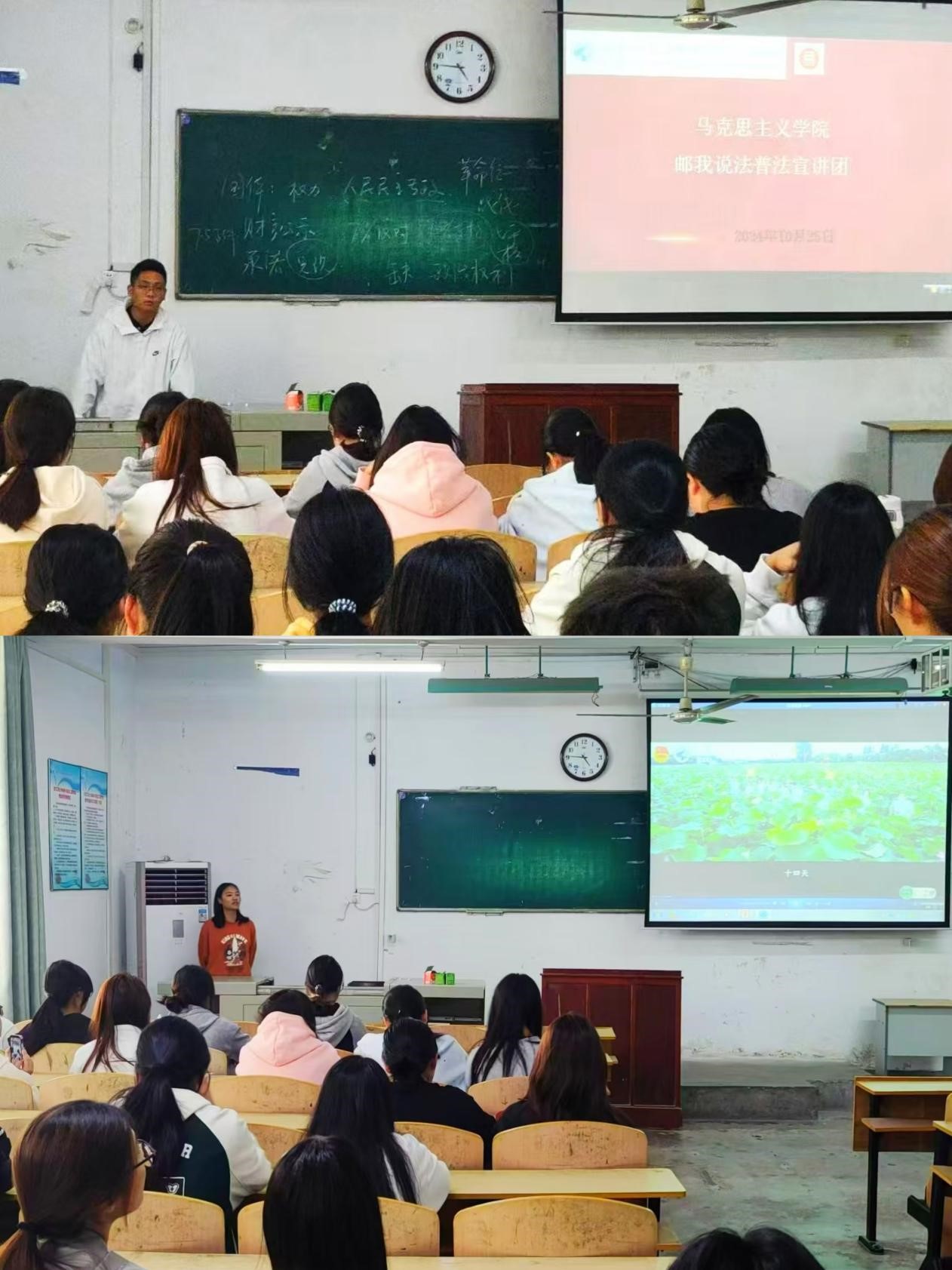 10月25日中午,yl6809永利集团组织“邮”我说法普法宣讲团和新青年社会实践团队为新生带来一场精彩纷呈的社会实践报告。“新青年”社会实践团队获评院级2024年“三下乡”暑期社会实践优秀团队,团队负责人分享了如何深入实践地,以安徽省安庆市怀宁县多元文化为载体,在社会实践中构建“大思政”理念,与怀宁县团委校地合作搭建实践育人平台,充分挖掘思政元素上好“行走的思政课”;“邮”我说法普法宣讲团致力于推动高校及社区法治教育实践与创新,通过采用普法、防诈小剧场、案例解说、知识测试等创新方式为目标群体提供普法服务,提升大学生及社区居民法治意识、维权意识、法律风险防范能力,理论结合实践上好“一线的专业课”。团队负责人通过宣讲邀请更多的青年学生积极了解并投身到社会实践中,一代人有一代人的担当,青年学子应尽早树立正确的价值观,努力学习专业知识和技能,在实践中接受教育、增长才干、做出贡献。