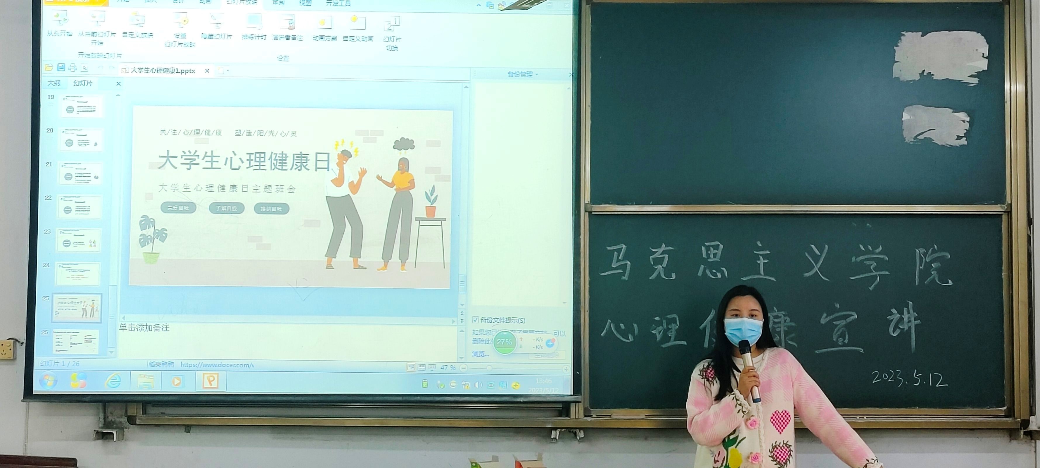 会议开始,张翔老师向同学们介绍5月25日为全国大学生心理健康日,取“5·25”的谐音“我爱我”之意,旨在引导大学生“珍惜生命,关爱自己”,学会关注自我心理健康和心灵成长,提高自身心理素质。为培育学生自尊自信、理性平和、积极向上的健康心态,促进学生主动开展心理健康自助互助,提高大学生心理健康水平和心理健康素质。